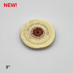 Flannel Cotton Buff, Fine, 30 Ply, 2 Rows Stitching, Shellac Reinforced Center Hole, 3” dia.