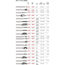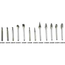 Miniature Carbide Bur Assortment Kit, 1 each A-201, A-202, A-212, A-213, A-214, A-215, A-216, A-217, A-219, A-220, A-222, A-224, A-226, A-228 & A-230, 3/32” Shank