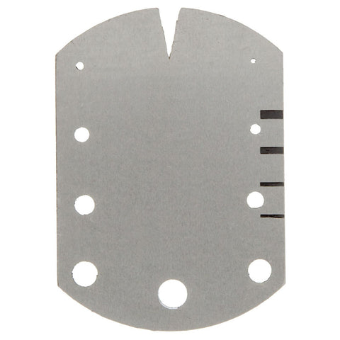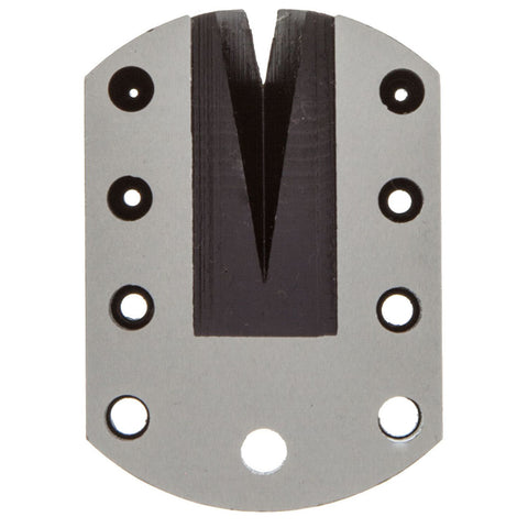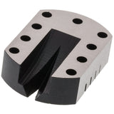 This oblong-shaped anvil has a flat, smooth, case-hardened surface that can be used as a base for staking, riveting and drilling small parts. Features nine graduated holes and five milled slots, including one long, tapering Vin. slot for removing rollers and pinions. Measures 1 ¾ Inch long, 1 ¼ Inch wide and ½ Inch thick.