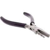 Tired of shaping wire loops by hand? This 3-in-1 jeweler's pliers takes the guesswork out of loop-making. The stepped jaws eliminate the need to change tools to alter loop size. Make professional-looking pieces with clean, consistent loops. The concave jaw shapes wire into smooth curves. With padded handles for comfort, these pliers are perfect for wire artists and jewelers looking for quality tools.