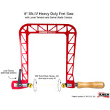 Designed to pull 50–60 pounds of tension on their blades, which makes it much stronger, and the blades vibrate less than our Mk3 saws. They are are also thicker and slightly heavier, closer to the weight of a traditional saw, but still lighter. The saw is powder-coated red and is extremely scratch and damage resistant.