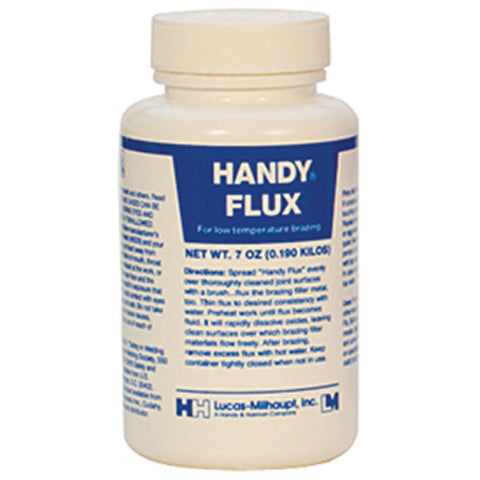 Handy Flux is a very durable and powerful general purpose flux that protects your parts up to 1600 Deg.F -870 Deg.C-. It is an active fluoride-type flux which is appropriate for all nonferrous metals and begins to melt and dissolve oxides at 600 Deg.F -320 Deg.C-. Paste formula can be cleaned up with hot water. 7 oz jar with brush.