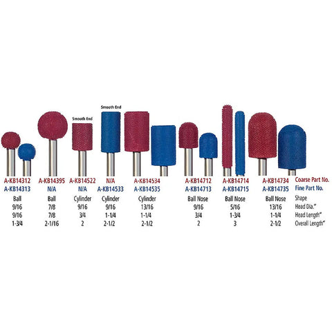 A-KB14734 – Ball Nose – 13/16” x 1-1/4” – 2-1/2” long – Coarse