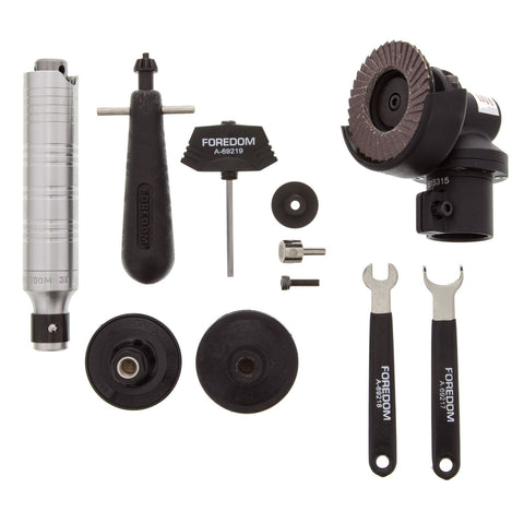 Foredom's Angle Grinder attachment is designed for use with our most popular H.30 Chuck-Style Handpiece. This quality-machined, sturdy, and compact device works with 2” and smaller discs and 2” wheels with 3/8” arbor holes. We offer 100+ accessories for this versatile product that can be used to grind, sand, and polish on various types of materials including metal, wood, stone, glass, ceramics, bondo and more. Four new Screw-Lok accessories have been added to this kit at no extra charge. See Kit contents below.