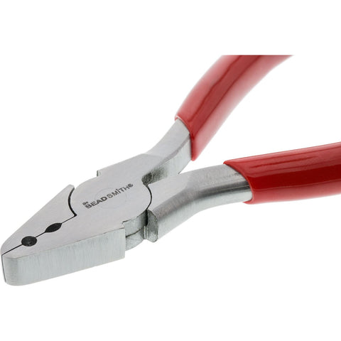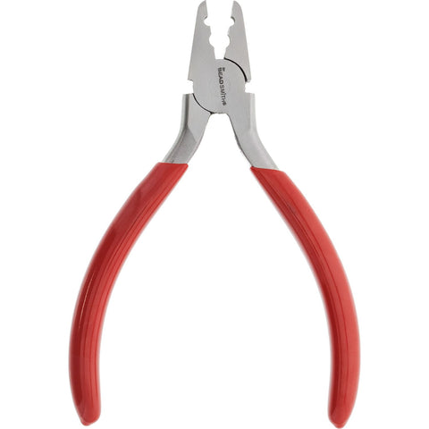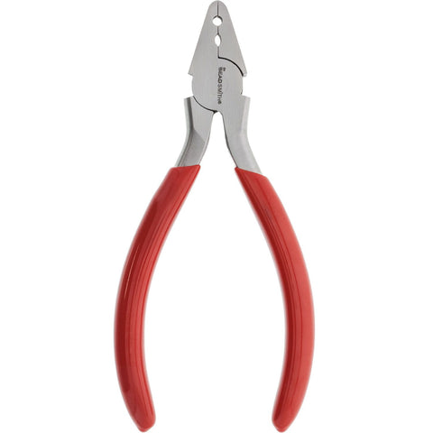 This pliers is ideal for leather, suede & ribbon fold-over crimps. It features a heavy-duty 9mm wide jaw with 2 different fold over notches to create professional fold-over crimps. It measures 5.5 Inch (140mm) and creates wonderfully smooth, rounded crimps.