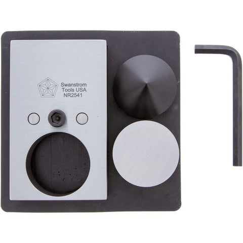 The Swanstrom Disc Cutter features precision-ground punches that produce smooth edges with minimal cleanup. Tight tolerances between the punches and the spring-loaded die plate ensure clean cuts while extending the tool’s service life.The die plate securely clamps metal in place, preventing distortion and keeping your hands safe. Its easy-open design allows for quick adjustments to accommodate various materials. For best results, place a shim of equal thickness to your cutting material on the opposite side to maintain balance.