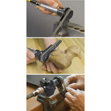 * A-69210 Drive Cup and A-69219 Hex Key, Foredom’s Belt Sander Attachment comes with a 180 grit belt installed and also includes 3 each of 100, 180, and 240 grit belts. The Belt Sander offers a power assist to sanding jobs and can be used to sand and smooth metal, wood, acrylic and composite materials. It is an all metal, quality-machined aluminum device that attaches with ease over the top of a Foredom H.30® handpiece (also fits H.30SJ slip joint and H.30H square drive models). It has 3 permanently lubricated ball bearings. Sandpaper belts measuring 7mm (9/32”) x 257mm (10-18”) come with the attachment and are available separately in 5-packs and assortments.