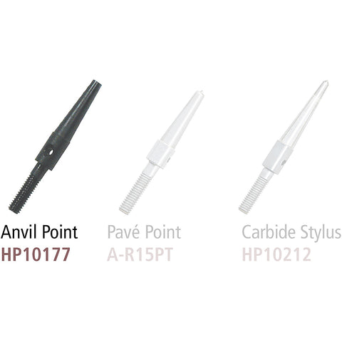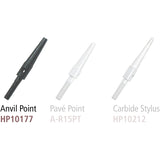 HP10177 – Heat treated, steel anvil point with flat top and threaded shank. Comes supplied with H.15, H.15D and H.15SJ flex shaft handpieces and MPMH-011 micromotor hammer handpiece. 4-48UNF-2A thread.