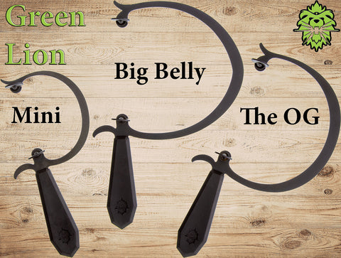 The Big Belly features a soft plastic faceted handle injected molded over a sturdy 11 gauge steel frame, embossed with the GreenLion symbol. The larger surface area of the thumbscrews makes changing blades quick and easy and the blade locking mechanism makes it possible to easily switch to a right or left-handed design.
