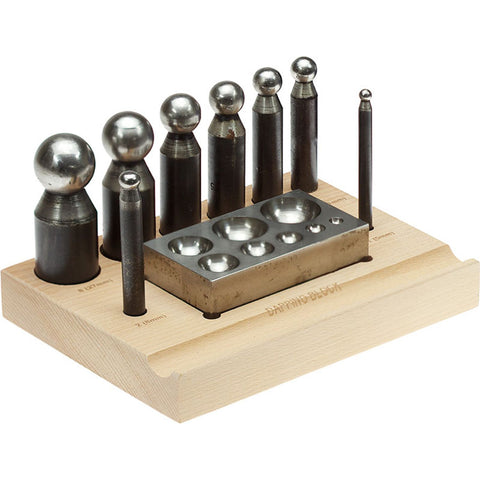 Dapping Block And Punch Set - Wooden Stand, 10 Pc